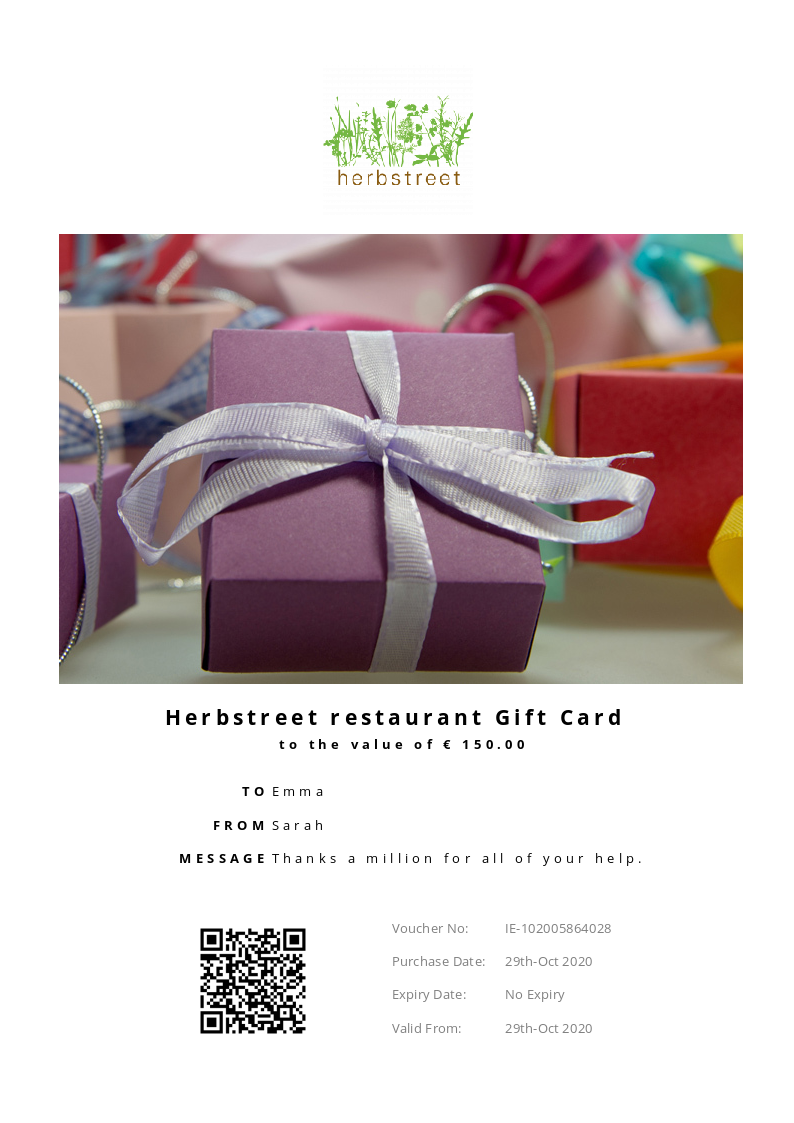 Herbstreet Restaurant allows you to purchase instantly printable gift vouchers, special offers and tickets using the Voucher Connect platform.